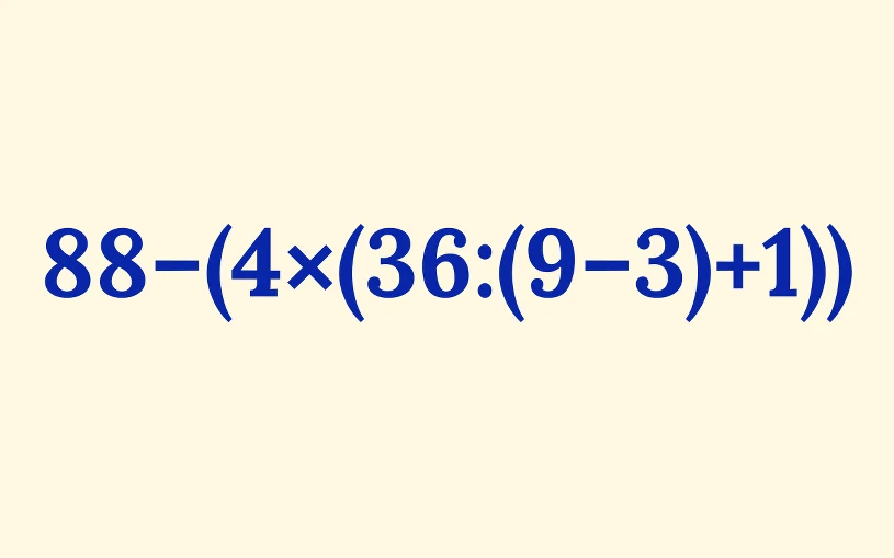 Działanie 88−(4×(36:(9−3)+1)) na pozór wygląda niepozornie, jednak ilość nawiasów potrafi zrobić swoje. Nawet najlepsi popełniają błąd, dlatego warto dzielić zadanie na mniejsze etapy, a trzymając się zasad matematyki szybko można dojść do poprawnego rozwiązania. Zatem, jakie obliczenia należy wykonać?