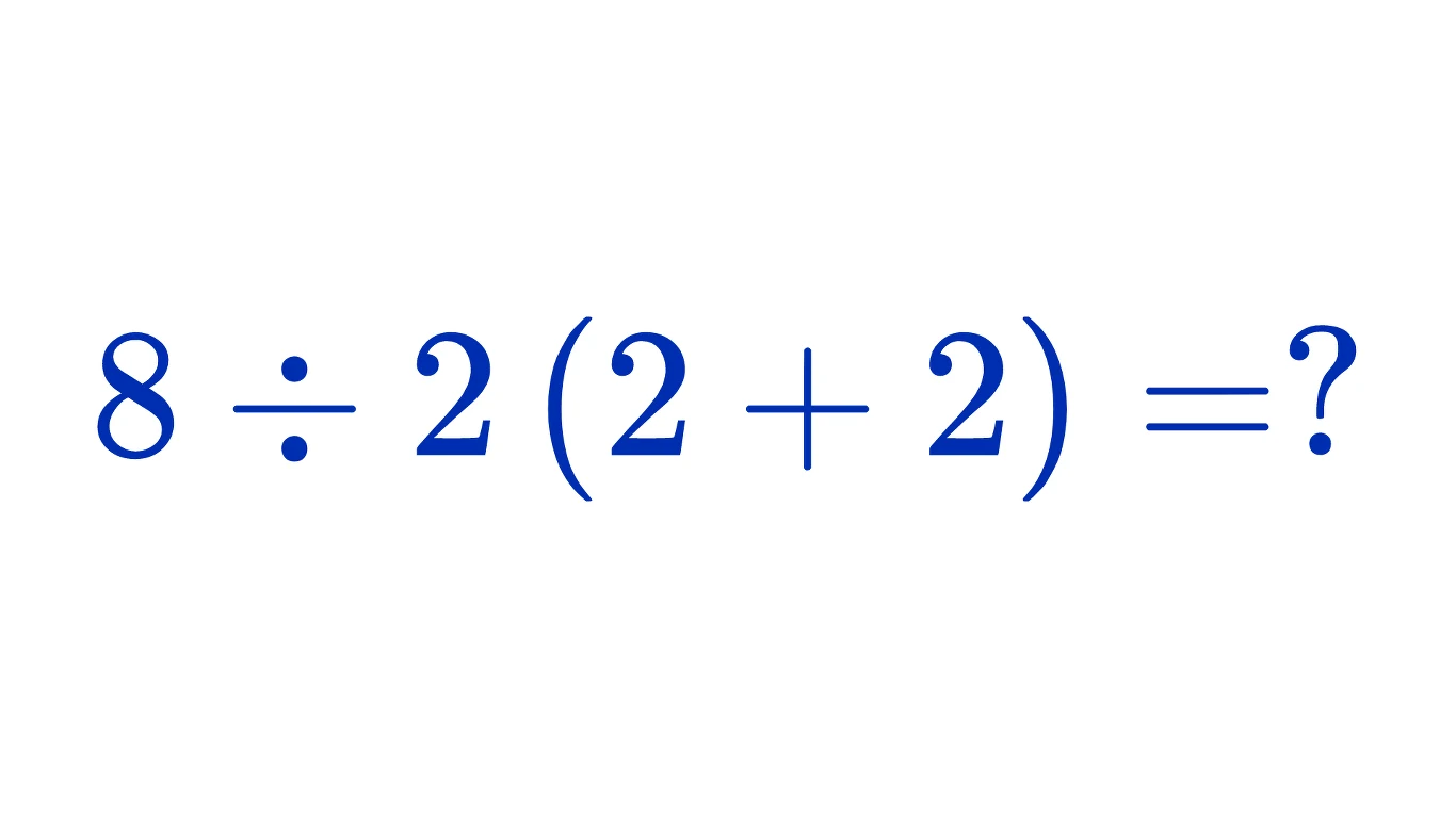 W przypadku tego działania na pierwszy rzut oka problemem może wydawać się kwestia braku symbolu matematycznego przed nawiasem. Jednak w takim przypadku musimy pamiętać, że w tym miejscu możemy po prostu wpisać symbol mnożenia. Choć zgodnie z kolejnością wykonywania działań zaczynamy obliczenia od nawiasów, czyli 2 + 2 = 4. W tym momencie nasze działanie wygląda następująco — 8 / 2 (4), a wstawiając symbol mnożenia przed nawiasem, otrzymujemy działanie 8 / 2 * 4. W przypadku równoważnych symboli wykonujemy obliczenia od lewej do prawej. 8 / 2 = 4 i dalej 4 * 4 = 16. W ten sposób otrzymujemy prawidłowy wynik.