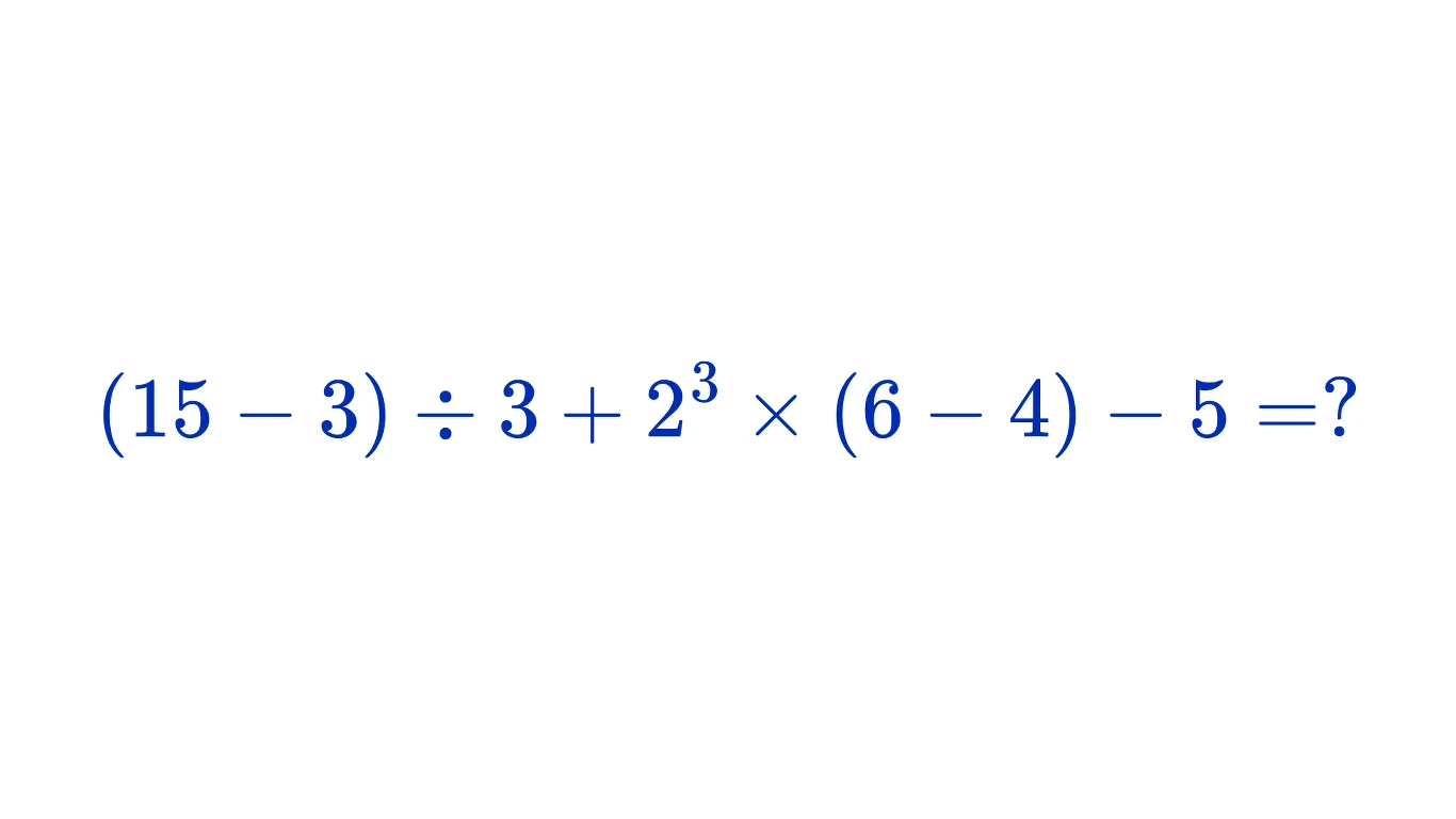 Zgodnie z kolejnością wykonywania działań matematycznych zaczynamy od nawiasów. W tym przypadku mamy dwa nawiasy i w obu znajduje się odejmowanie: 15 - 3 = 12 oraz 6 - 4 = 2. Następnie przechodzimy do potęgowania: 2 podniesione do potęgi 3 równa się 8. W tym momencie nasze wyrażenie wygląda następująco: 12 / 3 + 8 × 2 - 5. Przechodzimy więc dalej do dzielenia i mnożenia: