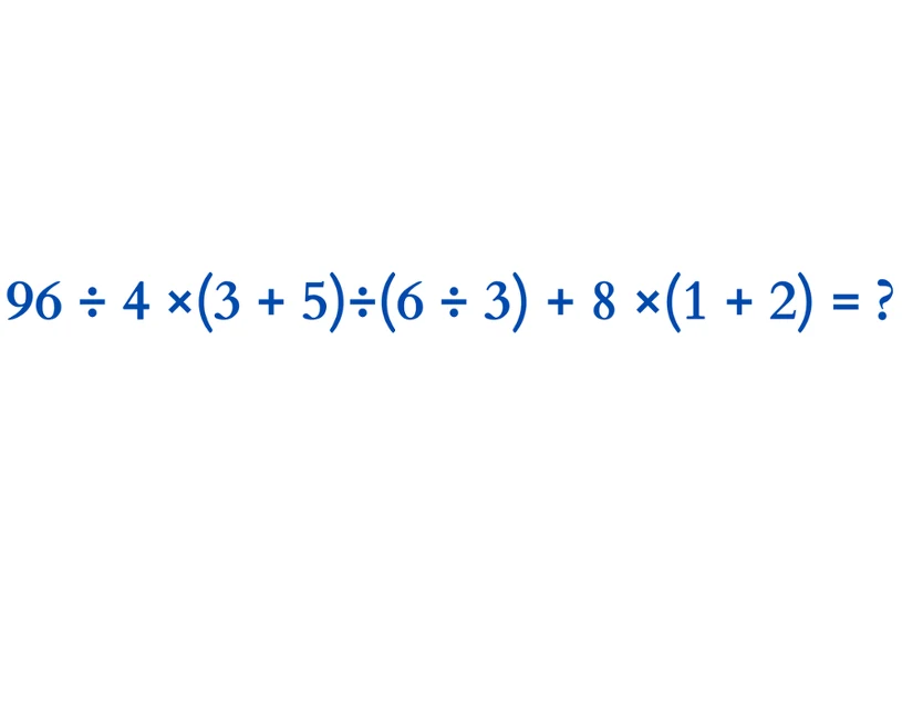 Na pierwszy rzut oka przykład 96 : 4 × (3 + 5) : (6 : 3) + 8 × (1 + 2) wygląda banalnie. Wydaje się, że nie powinno tu dojść do żadnych pomyłek. Jednak niektórzy, rozwiązując działanie, zapominają o pewnej bardzo ważnej kwestii, przez co uzyskują zły wynik. Dowiedz się jak rozwiązać ten przykład.