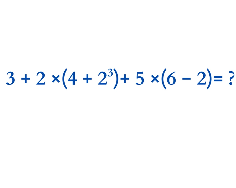 Na pierwszy rzut oka działanie 3 + 2 × (4 + 2^3) + 5 × (6 − 2) wygląda dość łatwo. Jest to jedynie kilka nawiasów, trochę mnożenia, dodawania i jedna potęga. Może jednak okazać się, że przez pewną pomyłkę uzyskamy zły wynik. Podpowiadamy, jak prawidłowo je rozwiązać.