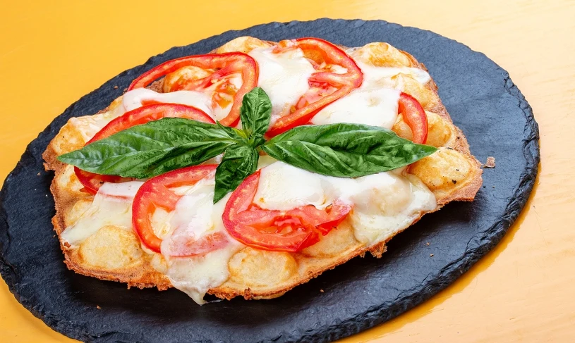 - Upieczone gofry posmaruj sosem i posyp startym serem. Na nim ułóż pokrojone, dodatki, np. pieczarki, wędlinę, pomidorki i oliwkę. Tak przygotowane gofry piecz w piekarniku przez ok. 5-10 minut w temperaturze ok. 200 st. Celsjusza.