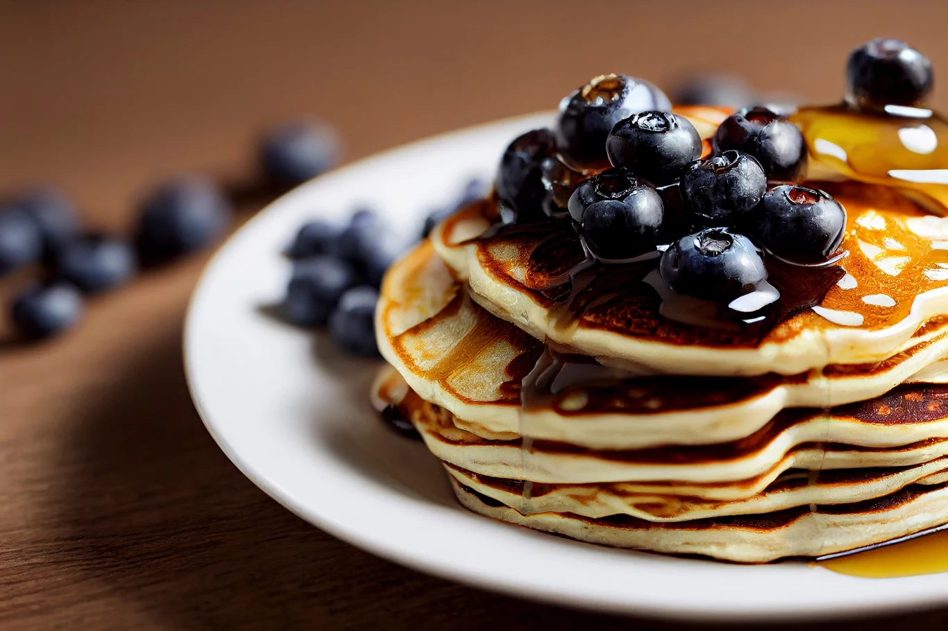 Pancakes smażymy z obu stron na złocisty kolor. Możemy podawać je z syropem klonowym oraz udekorować pozostałymi borówkami.