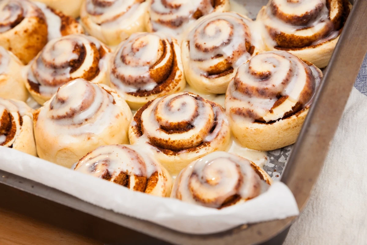 Zacznij od przygotowania rozczynu: drożdże rozetrzyj z odrobiną cukru, mleka i mąki, a następnie odstaw do wyrośnięcia. Gdy będzie gotowy, połącz go z resztą składników na ciasto i wyrabiaj do momentu uzyskania gładkiej konsystencji. Odstaw na około 1,5 godziny, aby pięknie wyrosło. Rozwałkuj je na prostokąt, posmaruj masłem i posyp mieszanką cukru, cynamonu oraz cukru wanilinowego. Zwiń w roladę, pokrój na kawałki i ułóż na blasze. Po kolejnym wyrastaniu posmaruj jajkiem i piecz w 200 stopniach Celsjusza przez 15 minut. Na koniec wystudzone bułeczki polej lukrem cytrynowym.