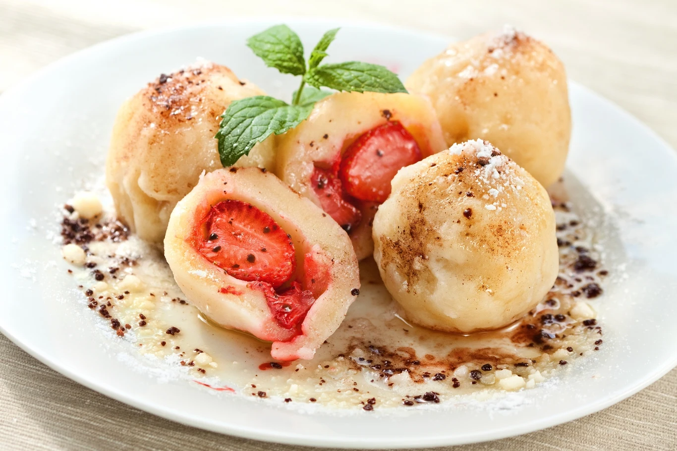Babcia zawsze podawała knedle z truskawkami oprószone cynamonem albo cukrem pudrem. Możemy też polać je jogurtem naturalnym lub zasmażką z bułki tartej i masła.