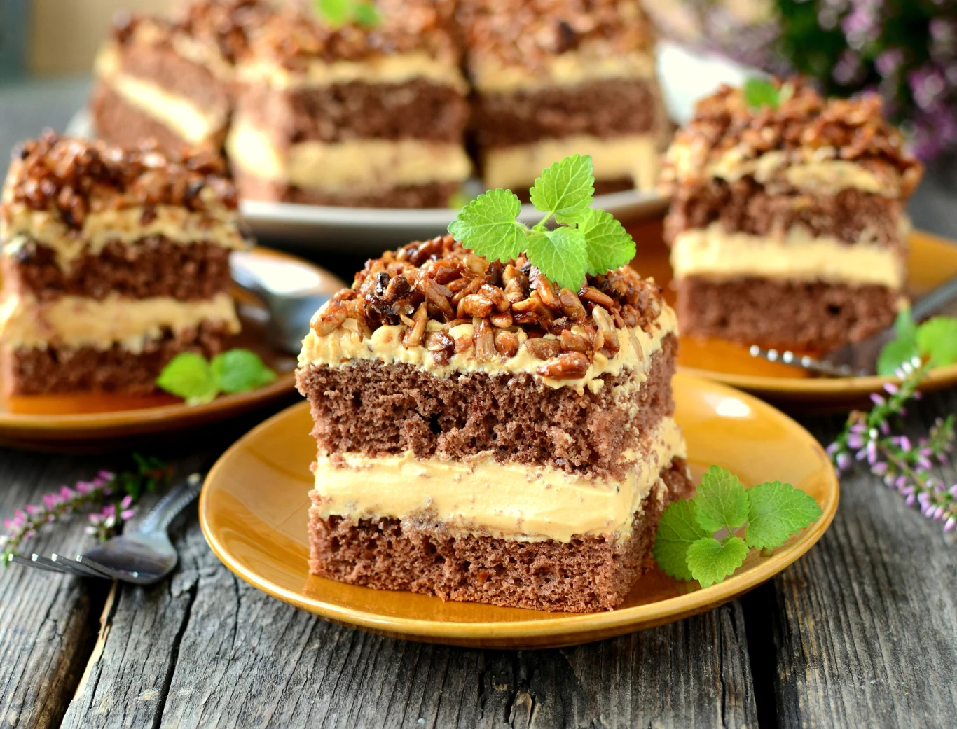 Słonecznikowiec to smakowite ciasto warstwowe, w którym główne skrzypce odgrywają karmelizowane ziarna słonecznika. Choć są niepozorne i na ogół nie kojarzą się z ciastem, z pewnością swoim smakiem zachwycą każdego. W połączeniu z czekoladowym biszkoptem oraz masą kajmakową tworzą doskonałe ciasto w sam raz na wielkanocny stół.