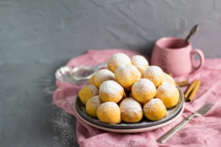 Karnawałowy wariant pączków opiera się na cieście bez drożdży, którego podstawą jest wcześniej ugotowany i przestudzony budyń. Takie rozwiązanie wyraźnie zmienia tempo pracy w kuchni, ponieważ znika etap wyrastania oraz długiego wyrabiania ciasta. Po krótkim wymieszaniu masa nadaje się od razu do smażenia, a gotowe minipączki zachowują miękkość i jednolitą strukturę także po ostudzeniu. To forma przygotowania dobrze dopasowana do spontanicznych spotkań, typowych dla okresu karnawału.