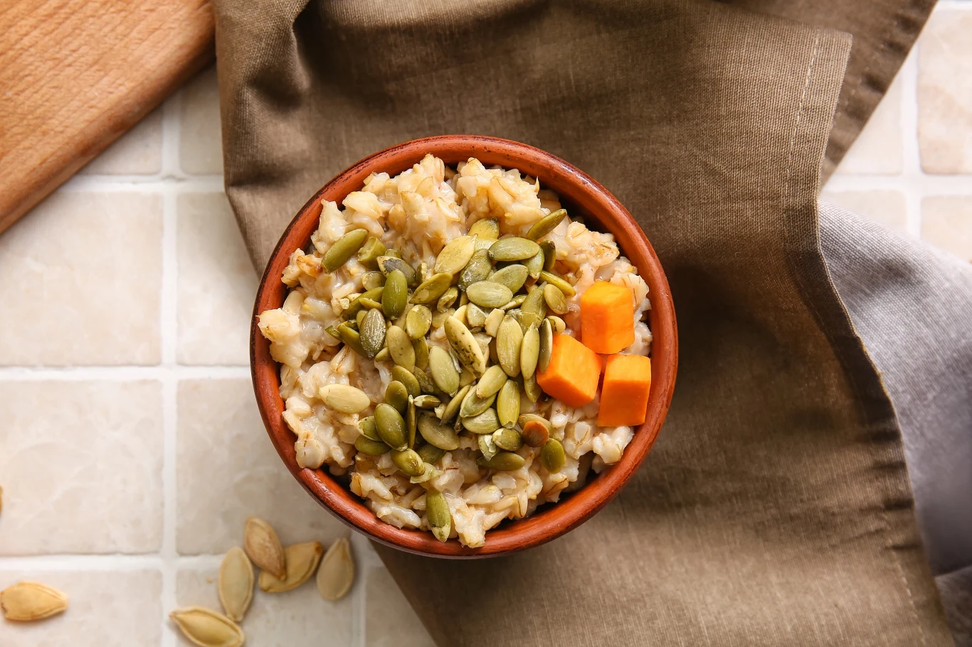 Dobrym pomysłem jest wzbogacenie swojego śniadania i dodanie do niego pestek dyni. Wystarczy, że pod koniec gotowania lub podając już owsiankę, dorzucimy dwie łyżeczki pestek dyni. Możemy dodać je surowe lub wcześniej lekko podprażyć na suchej patelni, aby wydobyć głębszy smak.