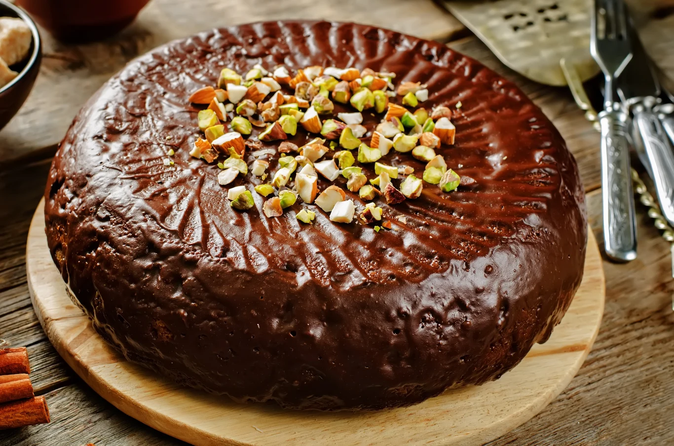 Na koniec udekoruj je dowolnymi dodatkami. Moja mama zdobi wypiek posiekanymi orzechami, startą, gorzką czekoladą oraz kandyzowaną skórką z pomarańczy.