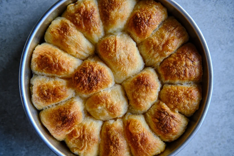 Wyrośnięte ciasto ponownie zagniatam i dzielę na 8 części - robię z nich bułeczki. Potem przekładam je do tortownicy wyłożonej papierem do pieczenia. Na koniec obsypuję powałki kruszonką i piekę w piekarniku nagrzanym do 180 stopni około 40 minut - wierzch musi być lekko brązowy. Przed podaniem polecam oprószyć bułeczki cukrem pudrem.