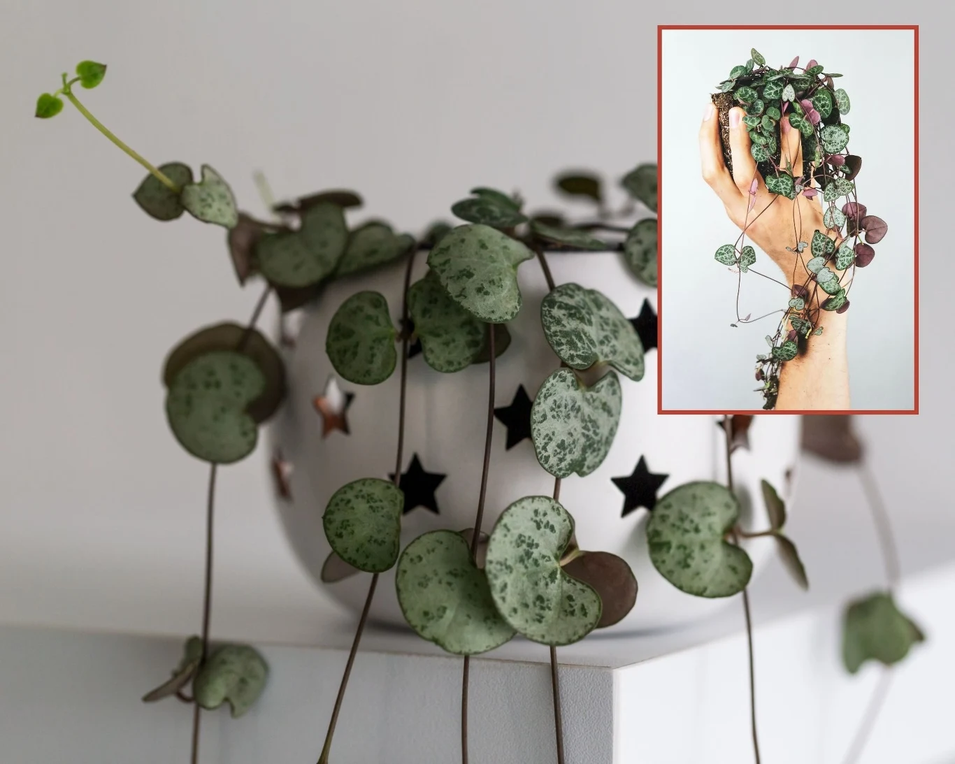 Ceropegia woodii nazywana jest lampionem chińskim lub łańcuchem serc. To sukulent pochodzący z Rodezji w Afryce Południowej, gdzie jest gorąco i sucho. Roślina nauczyła się więc gromadzić wodę i ograniczać jej parowanie. Należy do rodziny trojeściowatych i wyróżnia się nie tylko kształtnymi liśćmi, ale też długimi pędami, które wyrastają z mięsistej bulwy. Mogą zarówno zwisać, jak i oplatać podstawione roślinie podpory — stąd też można ją dowolnie kształtować. To coraz modniejsza roślina doniczkowa, która w dodatku bardzo szybko się rozrasta.