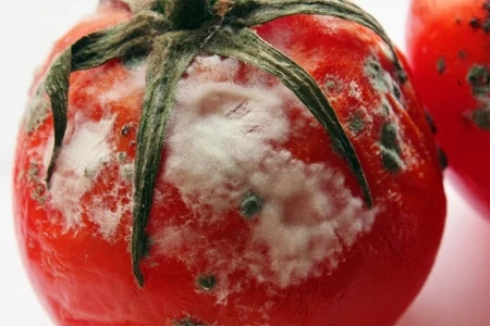 Spleśniałe pomidory nie są zdatne do jedzenia nawet po odcięciu zainfekowanej części owocu. To dlatego, że wbrew pozorom, bakterie nie rozwijają się wyłącznie w miejscu, w którym widoczny jest nalot. To zarodniki, ale grzybnia wrasta w głąb jedzenia.