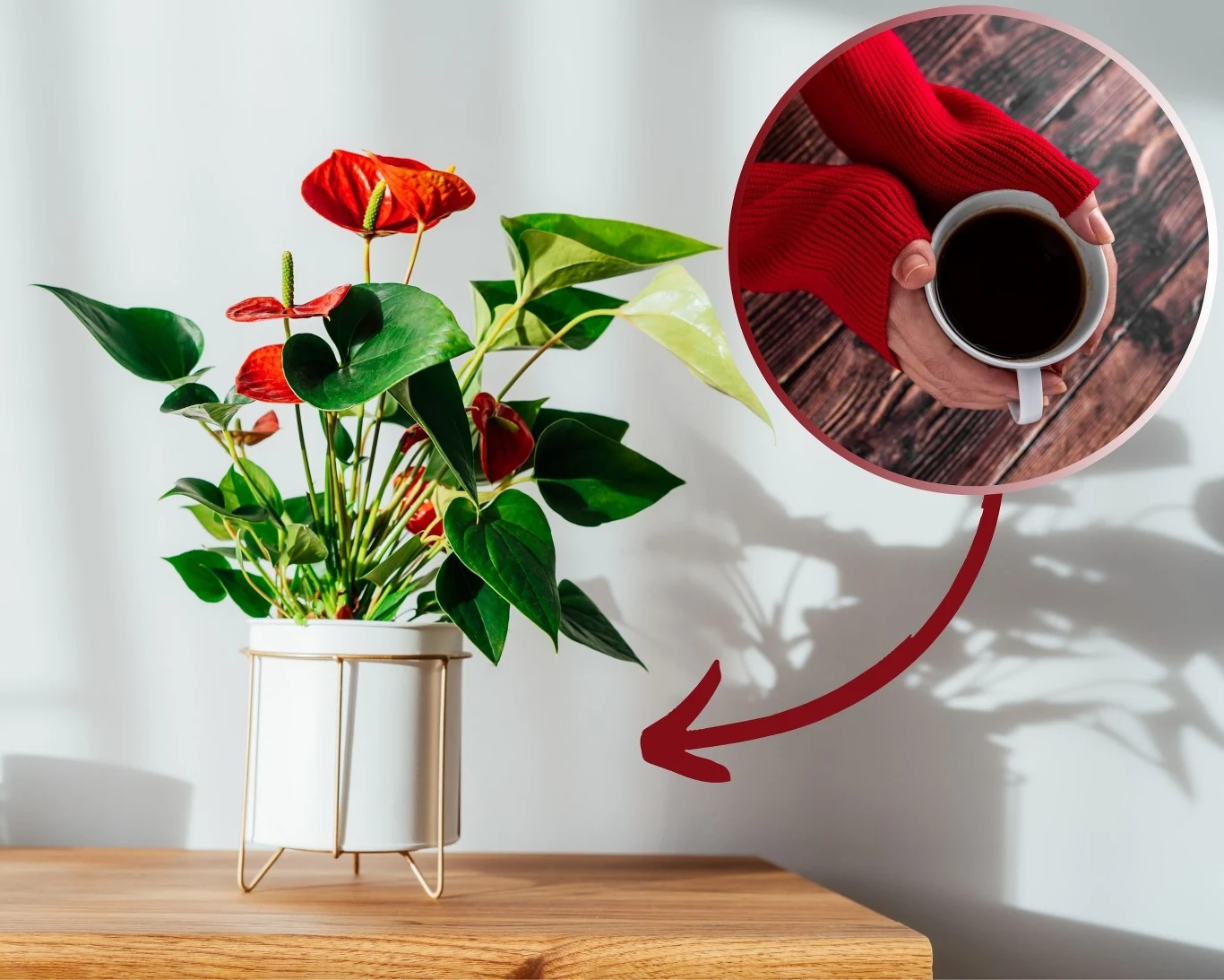 Wiele osób wie, że rośliny doniczkowe — w tym również anturium — warto nawozić fusami z kawy. To idealna odżywka do kwiatów kwasolubnych, która wzmocni również skrzydłokwiaty, krotony czy storczyki. W domach czy firmach, w których wypija się dużo kawy, łatwo o fusy, które należy wymieszać z ziemią, by nie spleśniały. Można także zalać 1-2 łyżeczki kawy wodą i poczekać aż ziarna spęcznieją. Gdy się to stanie, przecedzamy je przez sitko, a rośliny podlewamy samym płynem.