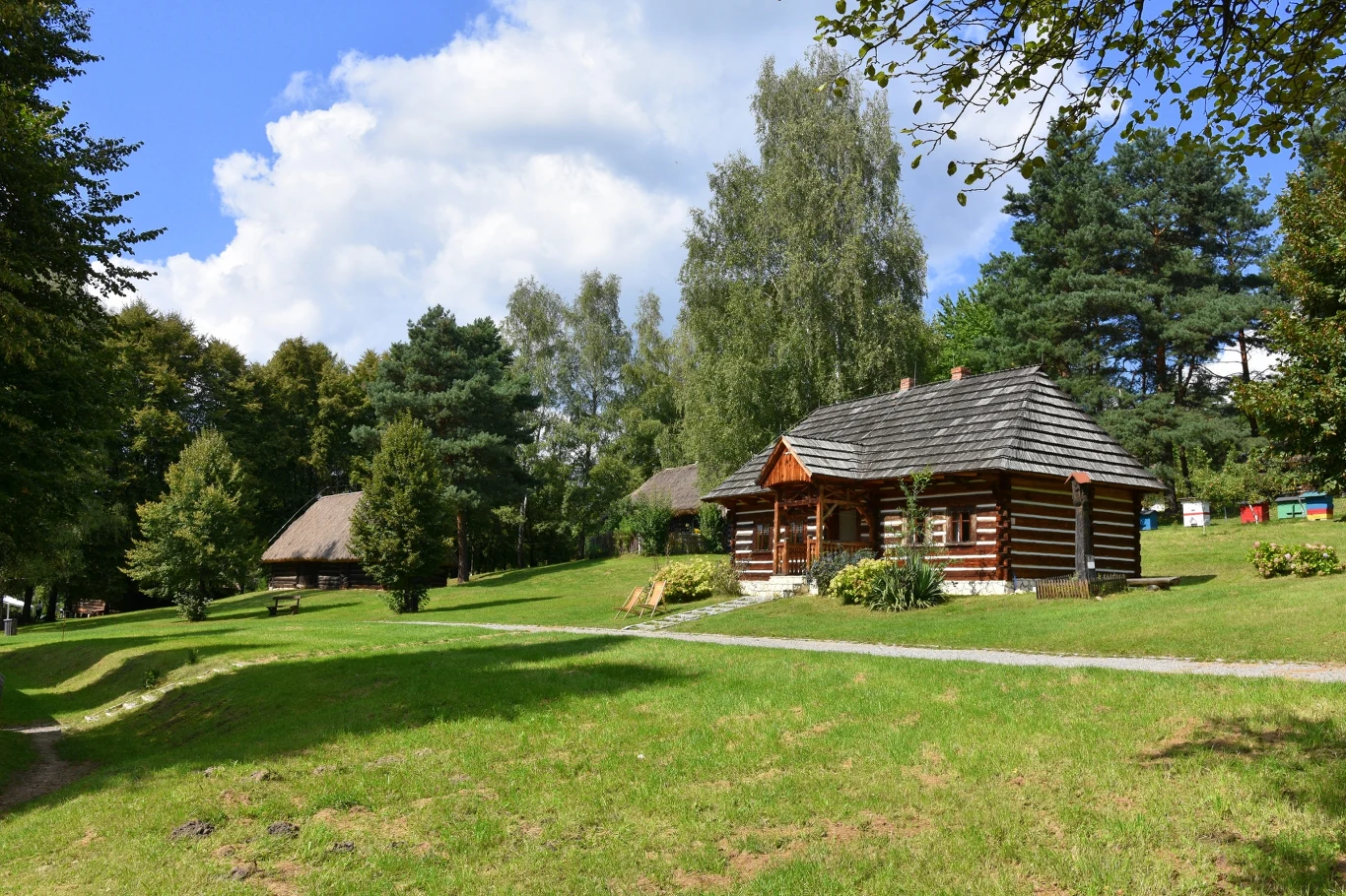 Na kilku hektarach zgromadzono ponad 25 drewnianych obiektów: chałupy, stodoły, spichlerze, a nawet kościół. Budowę rozpoczęto w 1968 roku, a pierwszymi eksponatami były dom z Chrzanowa (1804) i spichlerz z Kościelca (1798). Dziś tworzą one żywą opowieść o dawnym życiu mieszkańców regionu.