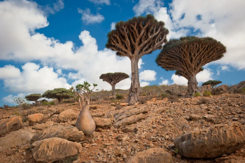 Sokotra to wyspa, której największą wizytówką są słynne smocze drzewa, o koronach w kształcie parasoli z czerwoną żywicą. Poza nimi symbolami archipelagu są także dzikie, niemal puste plaże z białym piaskiem i turkusową wodą.