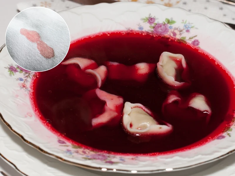 Jak usunąć plamę z czerwonego barszczu domowym sposobem? Te dwa produkty ją wywabią