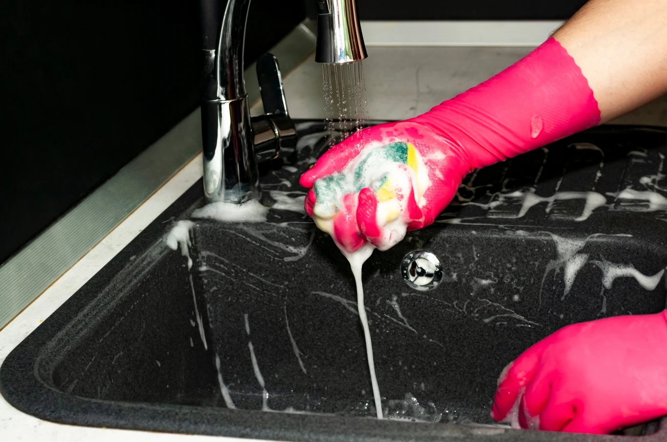 - Czyszczenie czarnej armatury płynem do naczyń - instrukcja krok po kroku