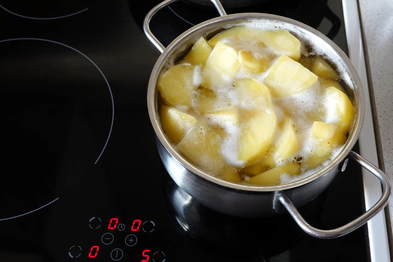 Ziemniaki gotujemy na średnim ogniu i podczas tego procesu zbieramy pianę z wody. Wszystko po to, aby wyglądały estetycznie podczas podania.