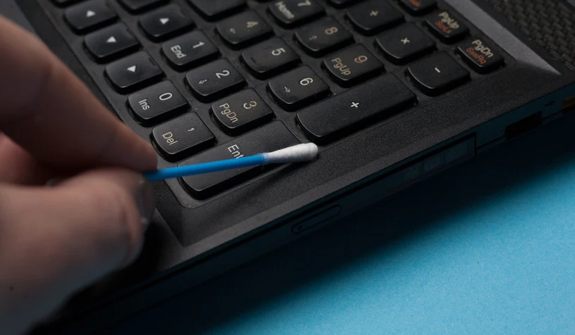 Przestrzeń pomiędzy klawiszami warto zdezynfekować za pomocą patyczka higienicznego i alkoholu izopropylowego. Rzeczonego środka można także użyć do wyczyszczenia powierzchni klawiatury. Wówczas wystarczy nim lekko zwilżyć ściereczkę z mikrofibry i przetrzeć nią klawiaturę, do której nierzadko przylega tłusty osad.