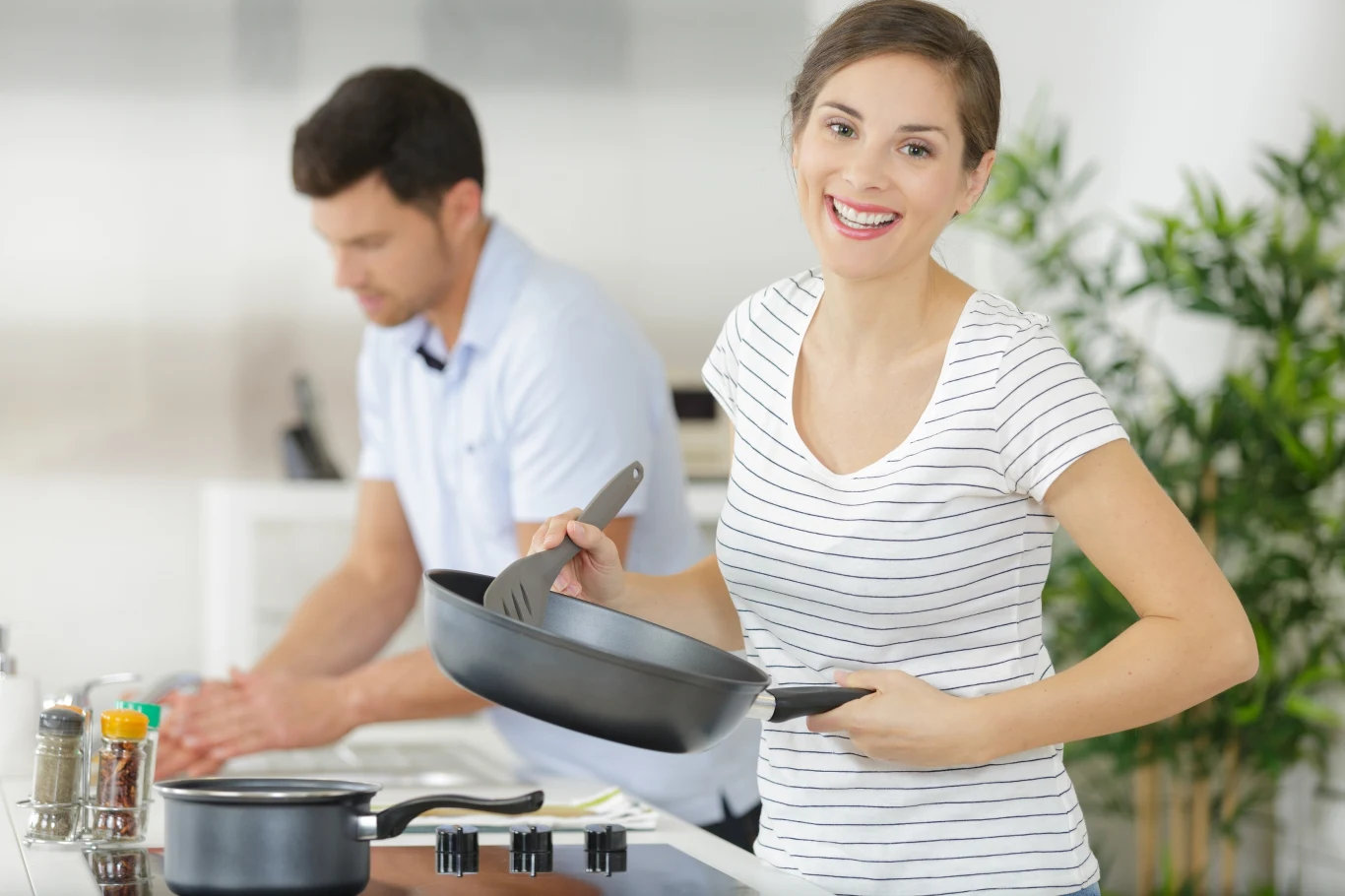 Woda jest czynnikiem odpowiedzialnym za pryskanie oleju z patelni. Co istotne nie chodzi tu jedynie o wilgoć, która znajduje się na powierzchni naszego naczynia, ale także o wodę, która zawarta jest w produktach. Wiele z nich wytwarza dodatkowy płyn podczas obróbki termicznej tak, jak np. ryba, mięso czy warzywa.