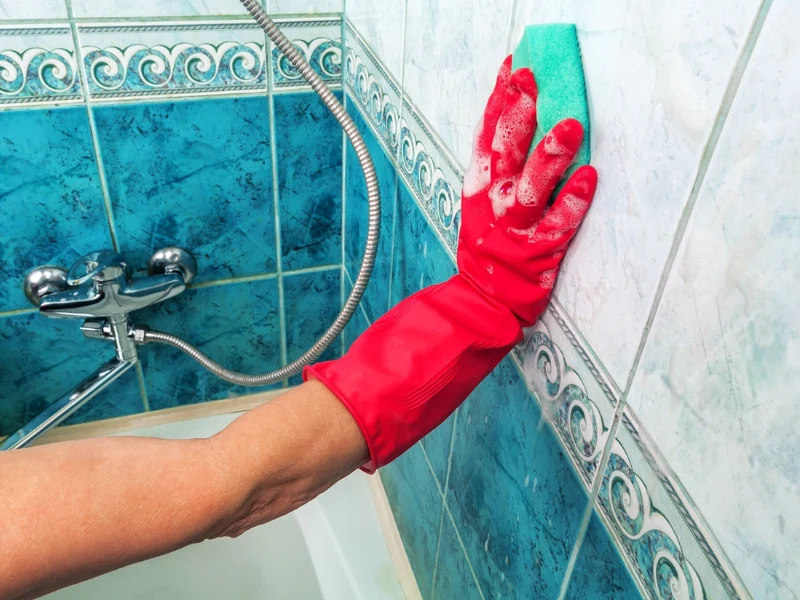 Wodę, wodę i boraks wymieszaj i umyj płytki, a później obficie spłucz kafelki ciepłą wodą. Czyszczenie najlepiej rozpocznij od miejsc na ścianie, wykonując ruchy od góry do dołu. Podłogę natomiast myj, kierując się od wnętrza pomieszczenia do wyjścia z łazienki.