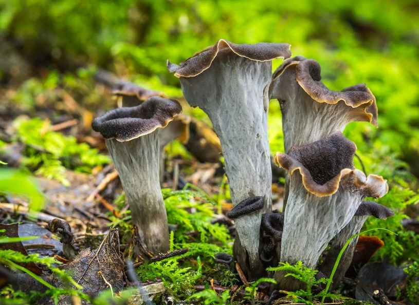 - Lejkowiec dęty (Craterellus cornucopioides) - jadalny grzyb, który ciekawie wygląda. Ma ciemnobrązowe zabarwienie i przypomina lejek lub trąbkę. Trudno go pomylić z innym gatunkiem, jest smaczny i aromatyczny.