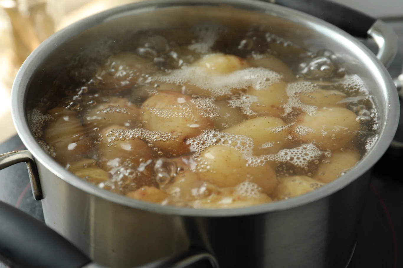 Problemem jest również zbyt mały margines pomiędzy poziomem wody a brzegiem garnka. Zbyt duża ilość w stosunku do liczby ziemniaków może dodatkowo potęgować problem kipienia. Gwałtowne wrzenie oraz piętrzenie się powstałej piany sprawiają, że wystarczy chwila nieuwagi, by cała kuchenka była do szorowania.