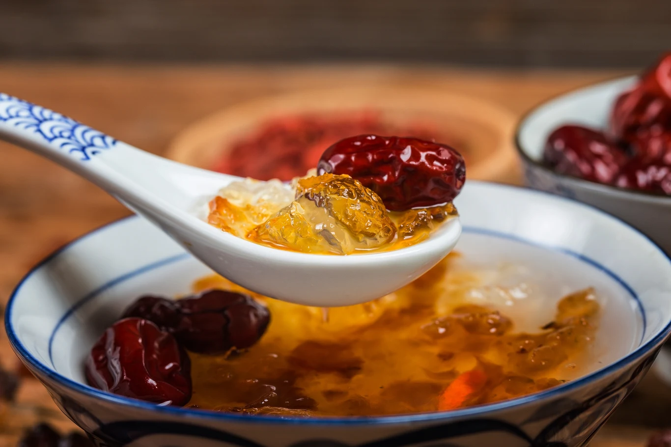 Jej półprzezroczyste grudki po namoczeniu zaczynają pęcznieć, dzięki czemu nabiera galaretowatej struktury. To sekret młodego wyglądu Azjatek m.in. dlatego, że choć sama nie zawiera czystego kolagenu, wspiera jego produkcję w organizmie (dzięki polisacharydom).