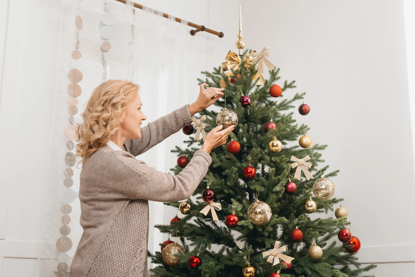 Później kolejność wieszania jest dość uniwersalna. Można zacząć od bombek, a później przejść do słodkości i wstążek bądź robić to na przemiennie. Może tutaj ponieść fantazja, ale warto dekorować choinkę w taki sposób, aby zachowywać proporcje pomiędzy górą i dołem drzewka, a także między przodem i tyłem.
