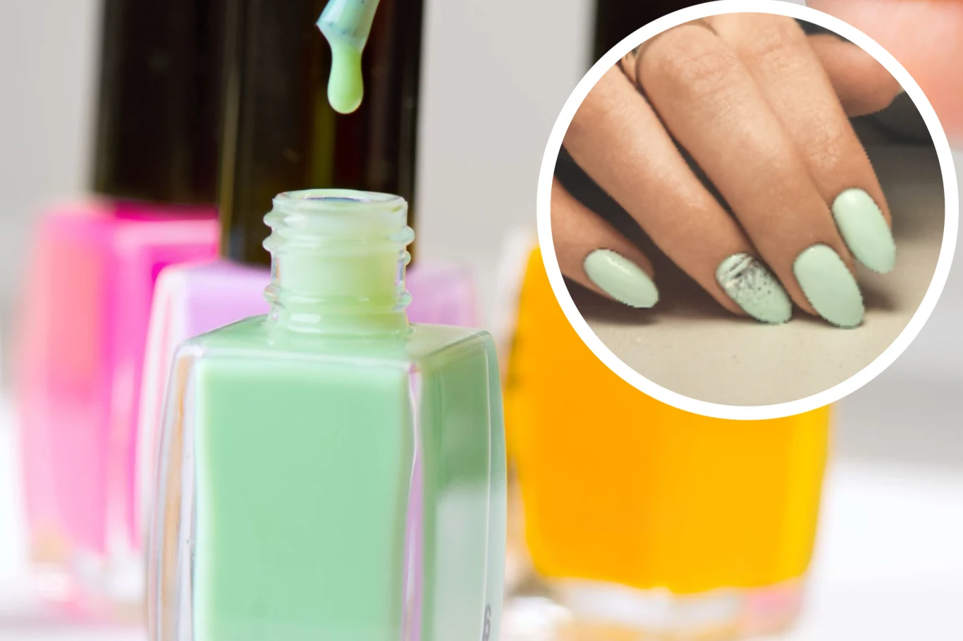 Stylistki z salonów podkreślają, że taka "zabielona" zieleń najbardziej pasuje do paznokci średniej długości i obciętych na krótko o kształcie kwadratu z zaokrąglonymi końcówkami lub migdała. Wtedy dłonie prezentują się najkorzystniej. A jeśli jednolite jasnozielone paznokcie wydają ci się zbyt nudne, możesz urozmaicić część z nich ozdobami lub wzorami w swoim ulubionym stylu np. glamour.