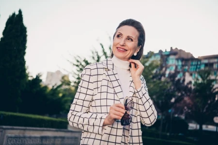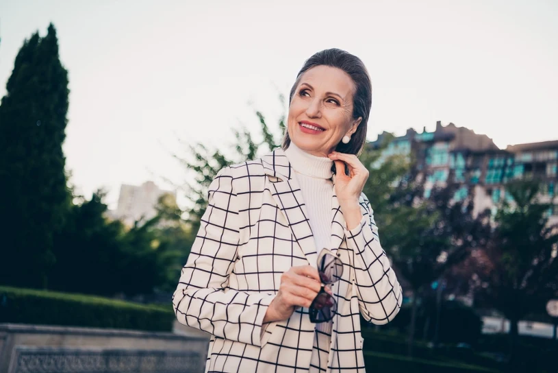 Kraciasta spódnica również będzie strzałem w dziesiątkę, dla 50-latek taka o długości midi. Wystarczy połączyć ją z dopasowaną bluzką lub jednolitym swetrem, żeby stworzyć elegancką stylizację na co dzień. W tym przypadku świetnie zaprezentują się botki na słupku lub klasyczne dodatki.